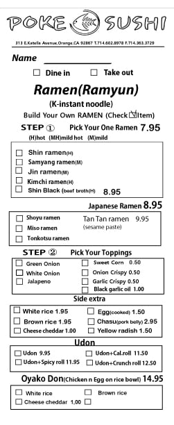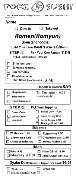 Poke bowl. Pokerrito. Sushi roll. Udon. Ramen.Teriyaki